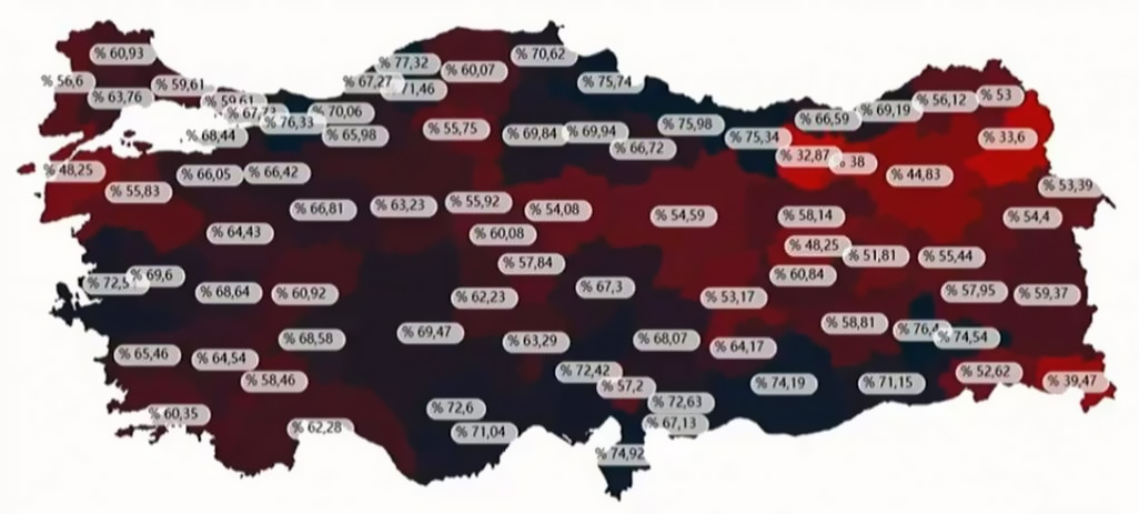 Sağlık Bakanı, vaka sayılarının artışa geçmesiyle birlikte, hastanelerde yer bulunmadığı yönündeki iddiaları boşa çıkararak, Türkiye'nin hastanelerindeki yatak doluluk oranlarını gösteren bir harita paylaştı.