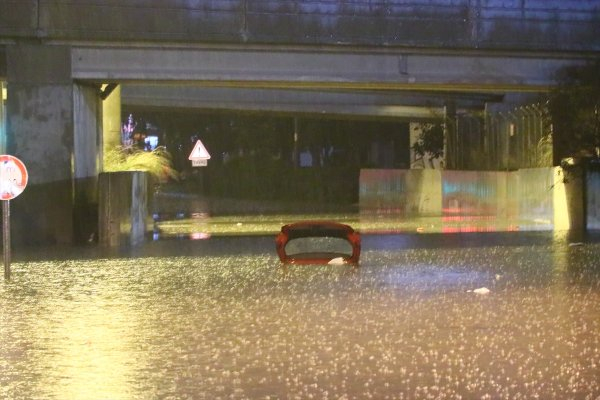 Konak ilçesine bağlı olan Çınarlı ile Halkapınar semtlerini birbirine bağlayan Yunuslar Alt Geçidi'nde biriken suları fark edemeyen sürücü, kendini suların ortasında buldu. Derinleşen suda araç, görünmez hale geldi.