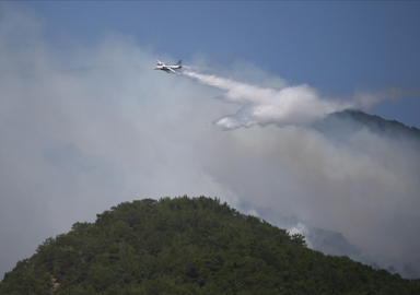 Arazinin sarp olması ve dar patikalar nedeniyle ekiplerin güçlükle ulaşabildiği yangın bölgesinde, iş makineleriyle yol açılarak dün öğleye doğru kara ekipleri de söndürme çalışmasına başladı.