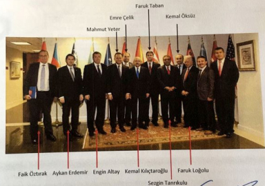 FETÖ'ye yakın Türki-Amerikan Birliği temsilcileriyle bir araya gelinen toplantıdan sonra çekilen fotoğrafta; CHP'li Sezgin Tanrıkulu, Faik Öztrak ve Engin Altay da yer alıyor.