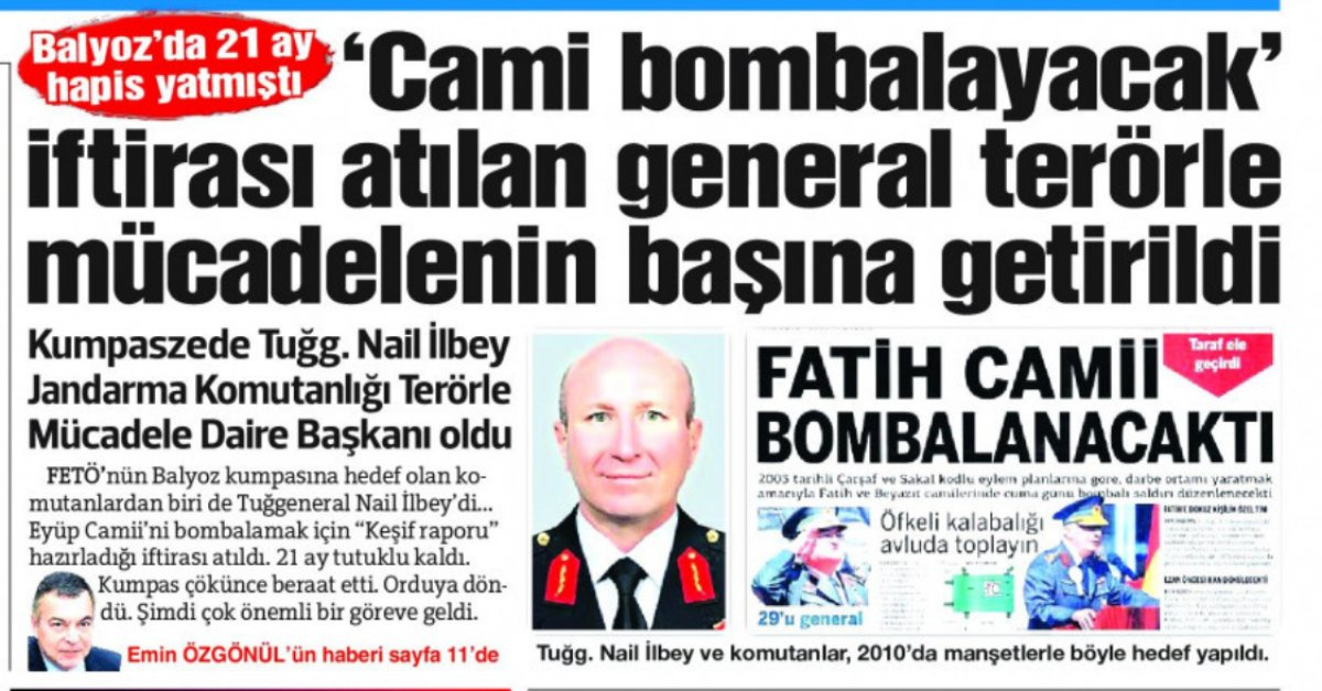 Eyüp Camii’ni bombalamak için keşif raporu hazırladı iftirası atılan Tuğgeneral Nail İlbey, Jandarma Komutanlığı Terörle Mücadele Daire Başkanlığı görevine getirildi.