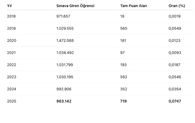 Aslında LGS’de yüksek puanlar yeni bir hikaye değil. 2019’da 565, 2023’te 562, 2024’te 352 öğrenci tam puan almıştı. Öğrenciler, öğretmenler ve dershaneler yıllardır bu sınavın kodlarını çözdü. Soruların zorluk derecesine göre böyle sonuçlar mümkün.