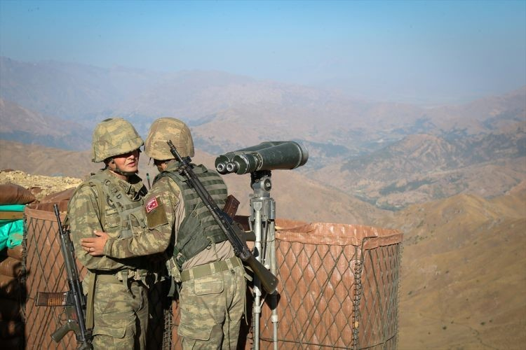 Hakkari'nin Şemdinli ilçesi kırsalında 2 bin 900 metre rakımlı tepede kurulan üs bölgesinde vatani görevini yapan Mehmetçik, bayram sevincini silah arkadaşları, komutanları ve telefonla görüştükleri aileleriyle paylaştı.