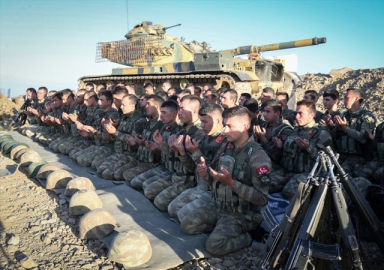 Burada görevli piyade Uzman Çavuş Hasan Doğan tarafından askerlere bayram hutbesi okundu. Üs bölgesinde bayram namazı kılan Mehmetçik, vatanın birliği ve bütünlüğü için dua etti.
