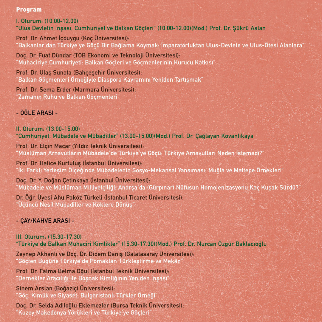 "Ulus Devletin İnşası. Cumhuriyet ve Balkan Göçleri" (10.00-12.00) Moderatör: Prof. Ur. Şükrü Aslan