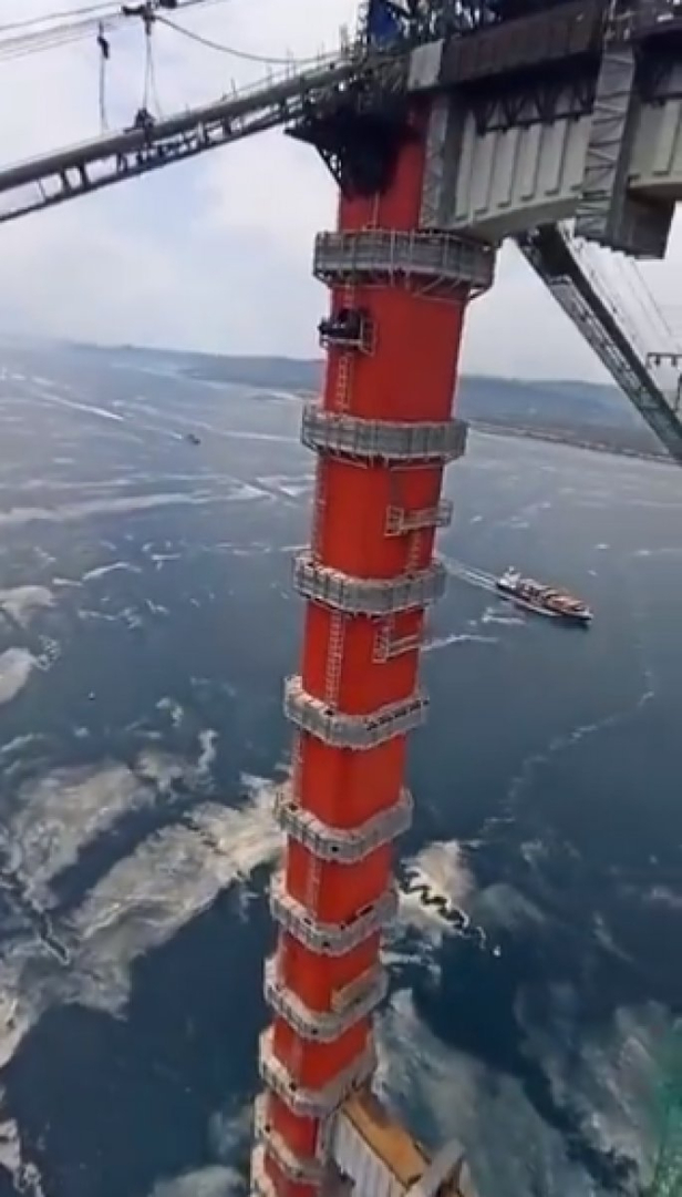 Ege'ye de ulaşmak üzere olan deniz salyaları, henüz yapımı devam eden Çanakkale 1915 Köprüsü'nde görüntülendi.