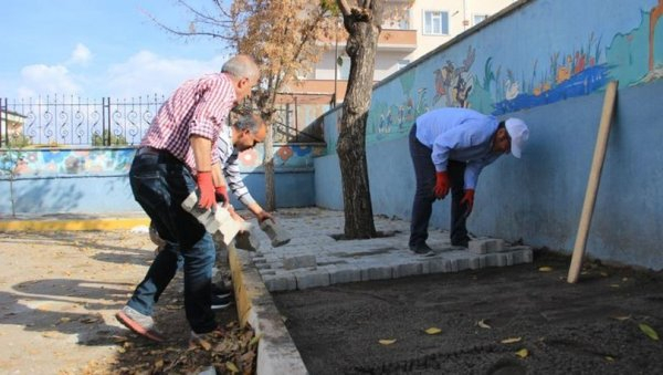 Şükrüpaşa İlkokulu'nda geçtiğimiz eğitim-öğretim döneminde kış şartlarında çamur olan okul bahçesinin ardından öğrencilerin bu yılda okula bu haliyle gelmesine gönülleri razı olmayan öğretmenler kolları sıvayıp ellerine, mala, fırça, balyoz, kazma ve kürek alarak işe koyuldu.