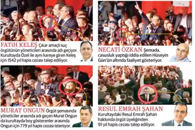 Bu tespitlerde bulunan başsavcılık, 38. Olağan Kurultay'a ilişkin görüntülere de iddianamede yer verdi. Özgür Özel'in kurultayda zafer konuşması yaptığı ana ilişkin görüntülerde, suç örgütü lideri Ekrem İmamoğlu ve örgüt yöneticileri Fatih Keleş, Murat Ongun ile iddianamede adı geçen Resul Emrah Şahan, Şafak Başa, Yiğit Oğuz Duman ve Necati Özkan ile birçok İBB personelinin Özgür Özel'in hemen yanında olduğu görülüyor.