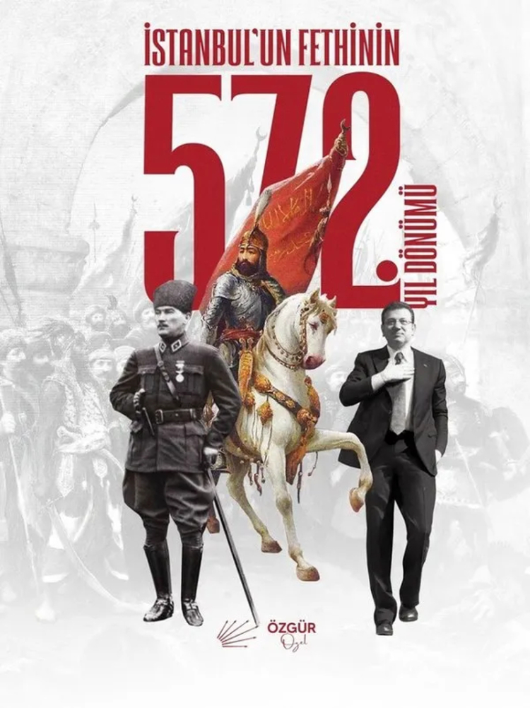 Cumhuriyet Halk Partisi (CHP) Genel Başkanı Özgür Özel’in İstanbul’un fethinin 572. yıl dönümünde sosyal medya hesabından yaptığı paylaşım, kamuoyunda tartışma yarattı. Özel’in paylaşımında, CHP’li İstanbul Büyükşehir Belediye Başkanı Ekrem İmamoğlu, Osmanlı padişahı Fatih Sultan Mehmet ve Türkiye Cumhuriyeti’nin kurucusu Mustafa Kemal Atatürk ile birlikte aynı görselde yer aldı.