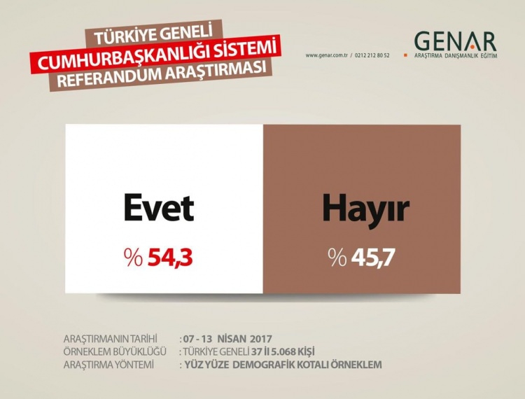 GENAR araştırma şirketi referanduma bir gün kala son anketi yayınladı.