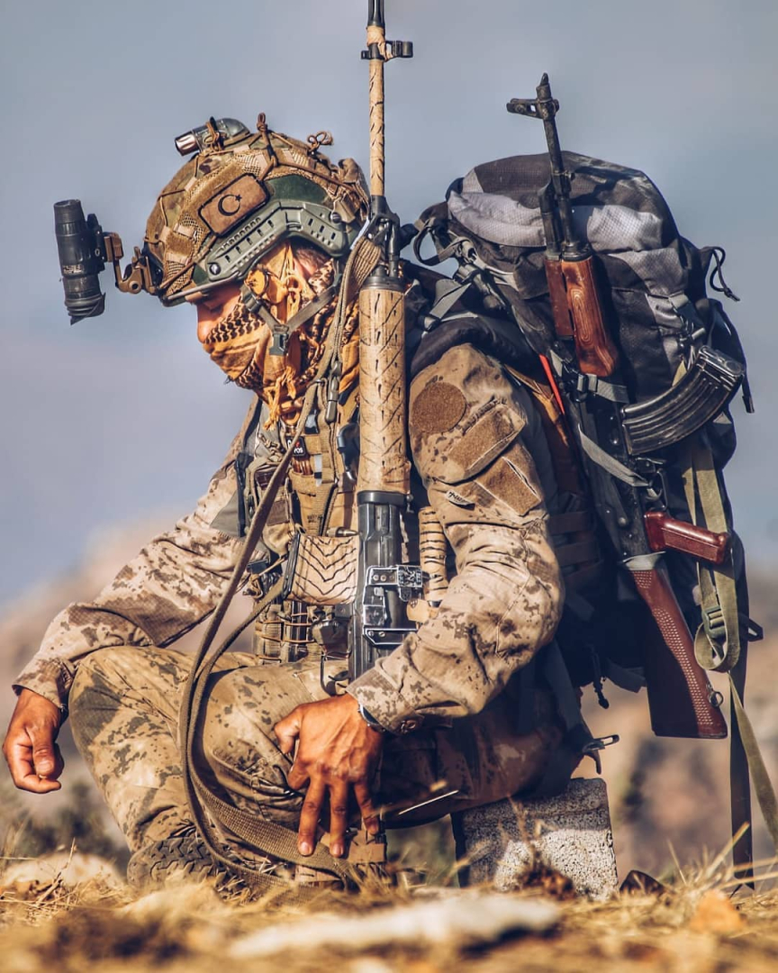 Güneydoğu'da, Kuzey Irak'ta, Suriye'de hatta zaman zaman Karadeniz'de dağları teröre dar eden Mehmetçik'in efsane fotoğrafı.