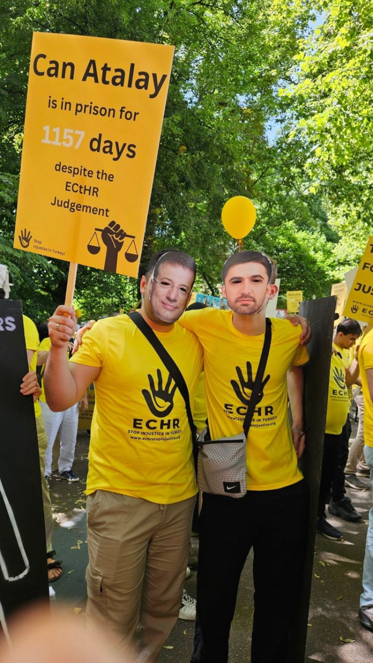 Fransa'da AİHM önünde eylem yaparak terör örgütünü aklamaya çalışan ve aralarından Enes Kanter'in de olduğu FETÖ'cüler Ekrem İmamoğlu maskesi taktı. FETÖ mensupları İmamoğlu ve FETÖ'den tutuklu isimler için özgürlük çağrısında bulundu.