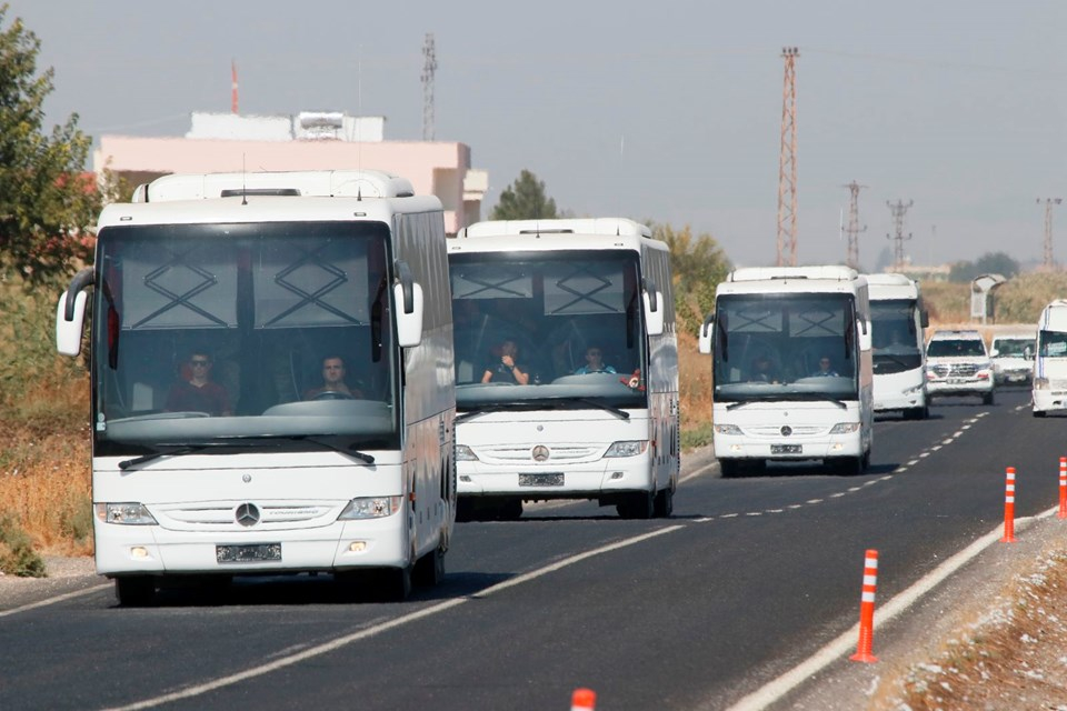 Fırat'ın doğusuna harekat beklenirken, 4 otobüslük konvoyun, güvenlik tedbirleri altında sınır hattındaki Akçakale’ye ulaştı.