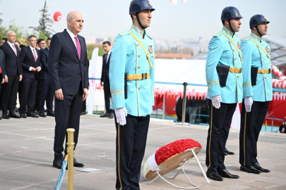 TBMM Başkanı Numan Kurtulmuş'un, Atatürk Anıtı'na kırmızı ve beyaz karanfillerden oluşan çelenk bırakmasının ardından saygı duruşunda bulunuldu, İstiklal Marşı okundu.