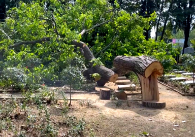 Alınan bilgiye göre, şehitlikte çevre düzenlemesi yapan ekiplerin kestikleri ceviz ağacı, şehit mezarlarının üzerine devrildi.