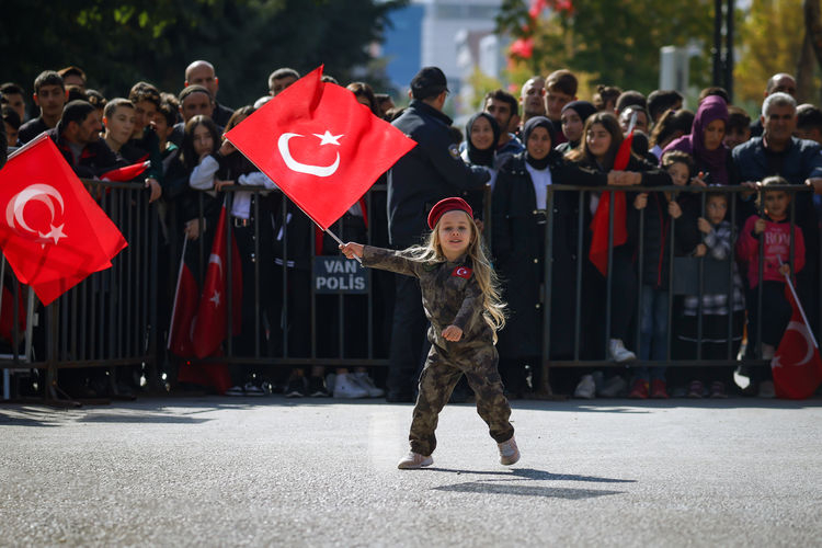 Kortej yürüyüşünü ellerinde Türk bayraklarıyla izlemeye gelen vatandaşlar da marşlara eşlik etti, asker ve polislere sevgi gösterisinde bulundu.