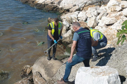 İhbar üzerine harekete geçen ekipler, Yalova Belediyesi'ne ait yağmur suyu deşarj hattından numune aldı.