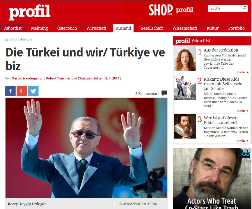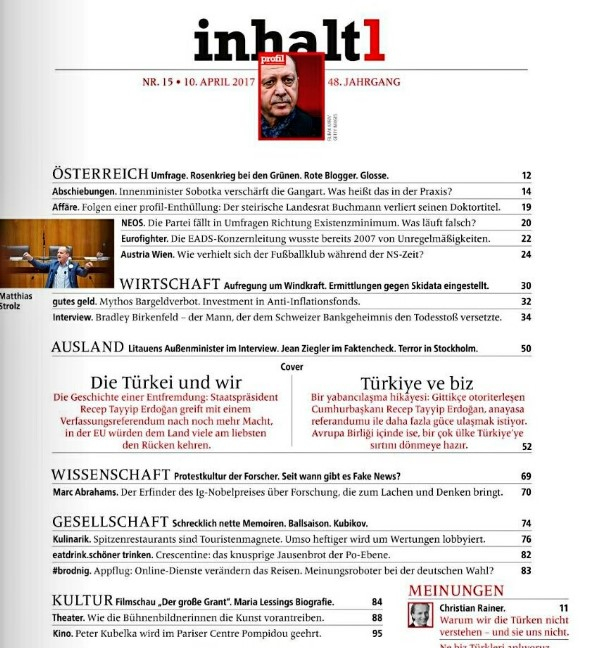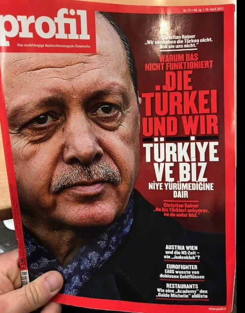 Avusturya'da yayın yapan Profil isimli dergi, Erdoğan'ı kapağına taşıyarak Türkçe başlık attı.