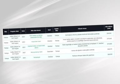 İfade özgürlüğü ve medeni hakları desteklemeyi amaçlayan 17. İstanbul Bienali'ne destek amacıyla da İstanbul Kültür ve Sanat Vakfı'na (İKSV) 73 bin dolar verildiği açıklandı.