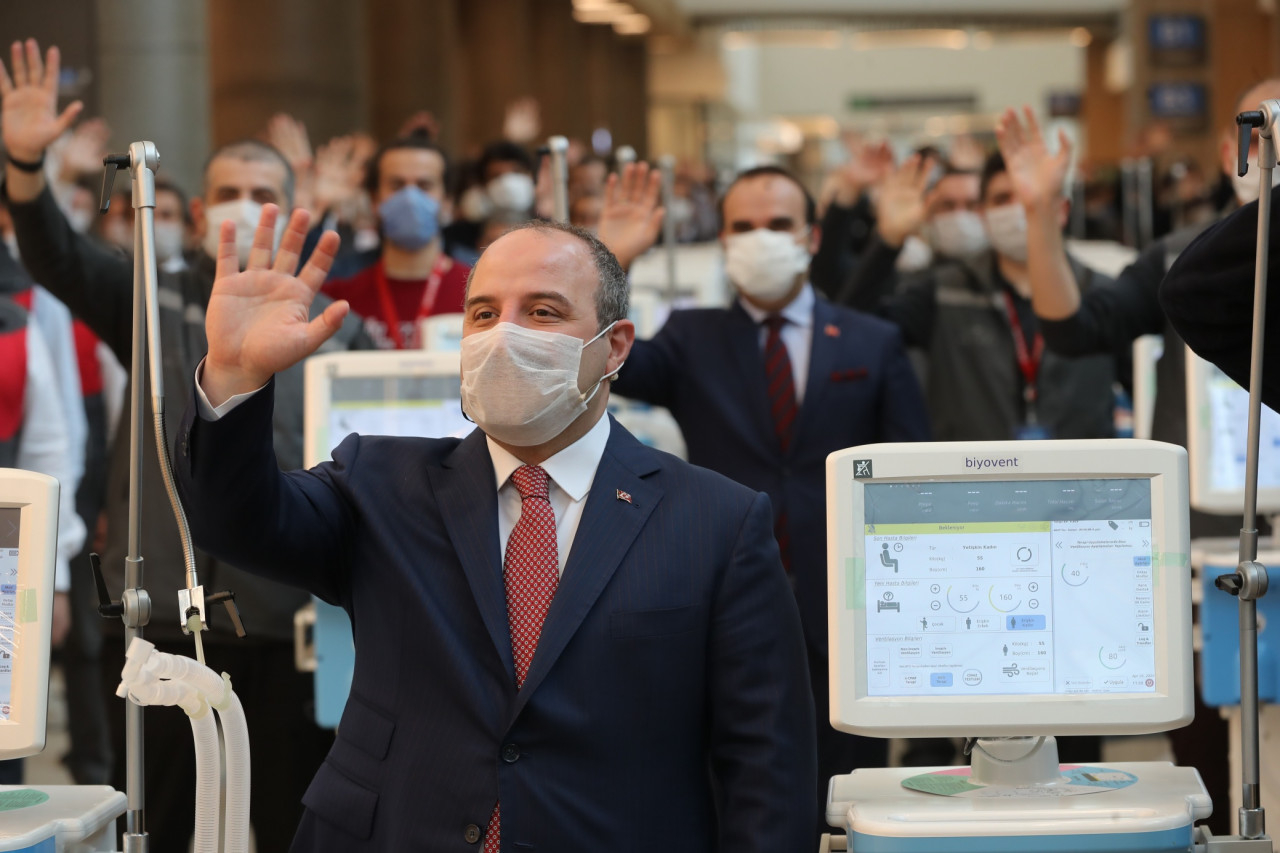 Az önce takdimi yapılan 115 ventilatör dışarıdan ithal edilerek geldi. Ama şu anda yerli ve milli 100 adet ventilatörü ekranda gördüğünüz kadro üretmiş durumda. Tabi ayda 5 bini üretmezlerse bilmeleri gerekiyor hesabını sorarız.