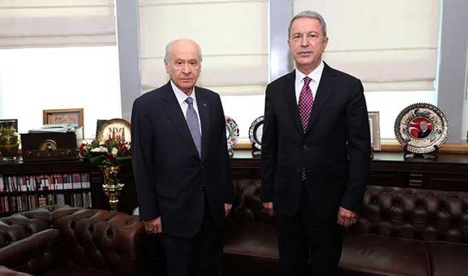 Milli Savunma Bakanı Hulusi Akar, MHP Genel Başkanı Bahçeli'le MHP'nin Genel Merkezi'nde baş başa olarak görüştü.