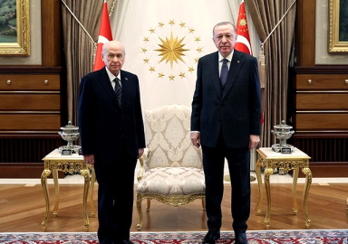 Ankara'da bugün sürpriz bir görüşme vardı. Cumhurbaşkanı Recep Tayyip Erdoğan, MHP Genel Başkanı Devlet Bahçeli'yi kabul etti.