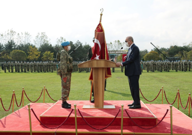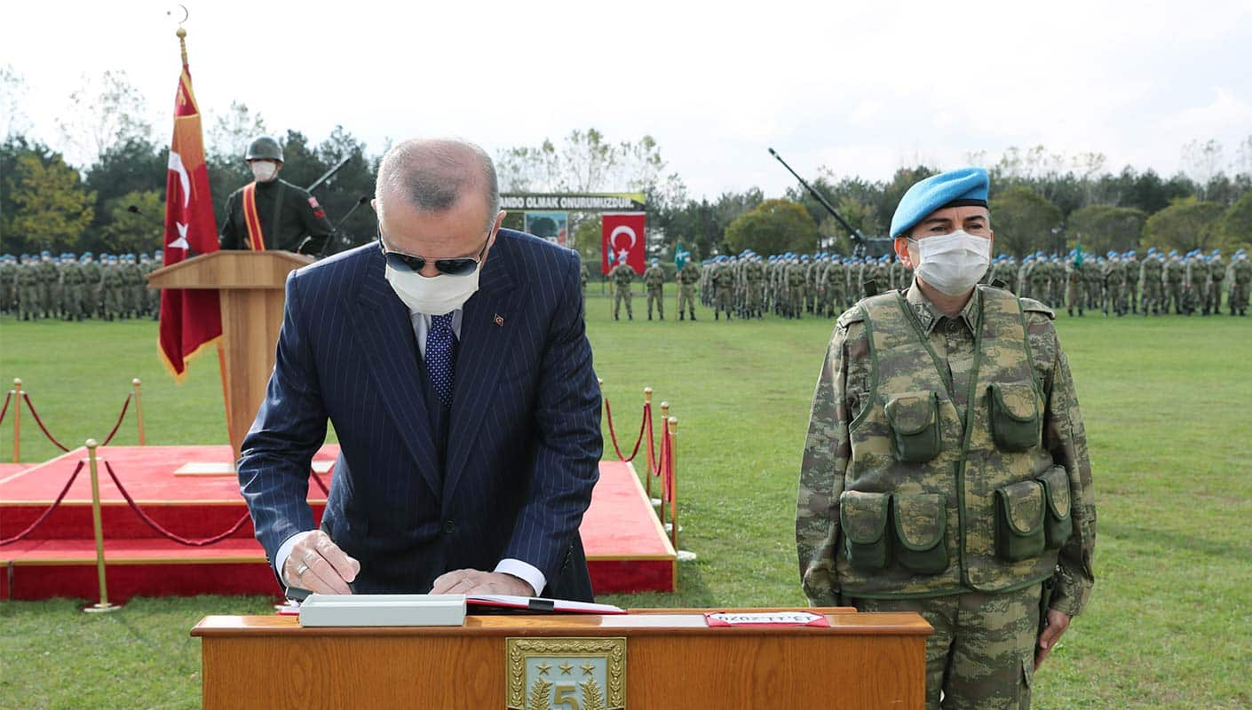 Cumhurbaşkanı Erdoğan, Çorlu'daki 105.Topçu Alay Komutanlığı'nda düzenlenen 41.Komando Tugay Komutanlığı Sancak Verme Töreni'ne katıldı.