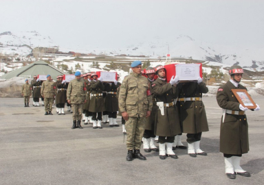 Şehitlerimizin cenazeleri memleketlerine uğurlanmak üzere Havalimanı'na götürüldü.