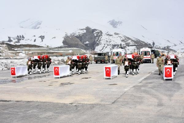 Türkiye Irak sınırdaki bölgede terör operasyonunda çatışma sebebiyle, şehit olan 4 asker için Hakkari'de tören yapıldı.