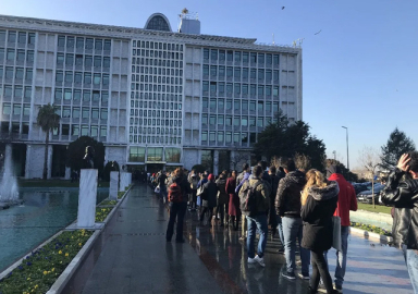 Başvurunun ardından belgelerini İBB'ye teslim etmek için Saraçhane'de İBB binasının önüne gelenler burada uzun kuyruklar oluşturdu.