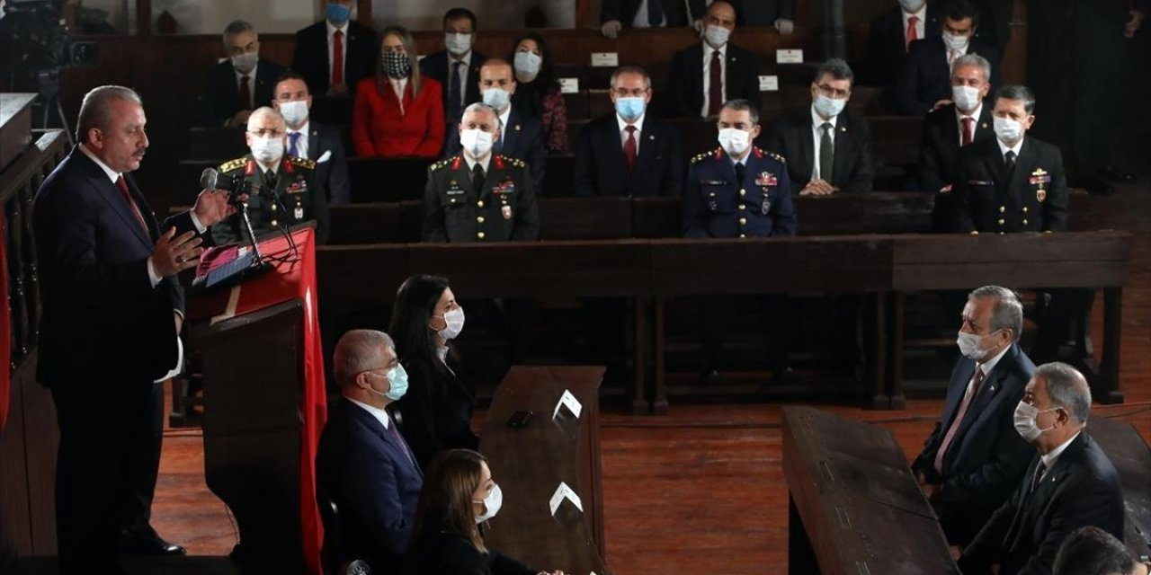 Şentop, Şerif Bey'in 100 yıl önceki sözlerini aktararak "100 yıl önce, bu saatlerde, bu binada, bu salonun çatısı altında, bu duvarlarda, çok seçkin topluluk huzurunda, ilk oturuma başkanlık yapan Sinop Milletvekili Şerif Bey'in dilinden, bu kelimeler yankılanıyordu. 100 sene sonra, 23 Nisan günü bu sözleri aynı mekanda tekrar etmekle büyük bir gurur duyuyorum" ifadelerini kullandı.