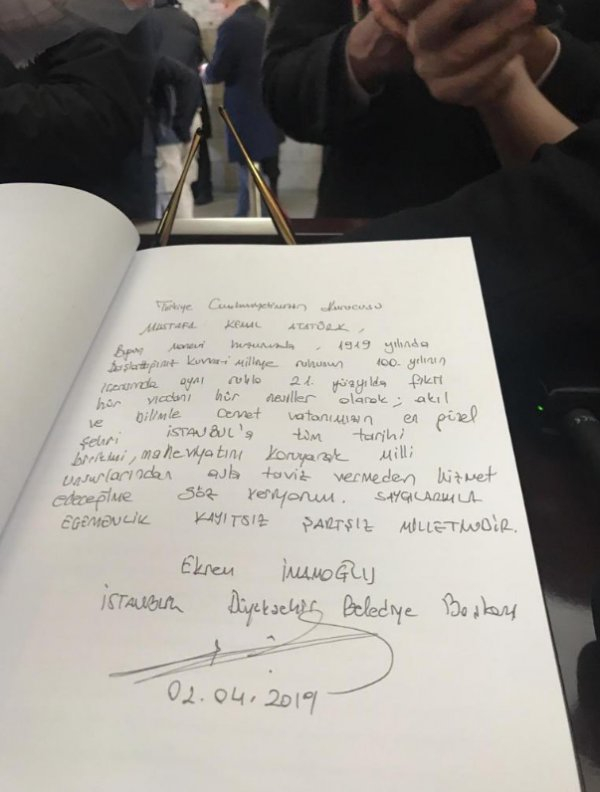 31 Mart yerel seçimlerinde AK Parti'nin geçersiz oylara itirazlardan kaynaklı İstanbul'da adaylığı kesinleşmeyen Ekrem İmamoğlu ailesi ile birlikte Anıtkabir'i ziyaret etti. İmamoğlu, ''Binali Yıldırım'ı teessüfle izliyorum. Hala afiş asıyorlar anlamıyorum. Ahlaki şekilde tebrik edin de işimize bakalım'' şeklinde konuştu.