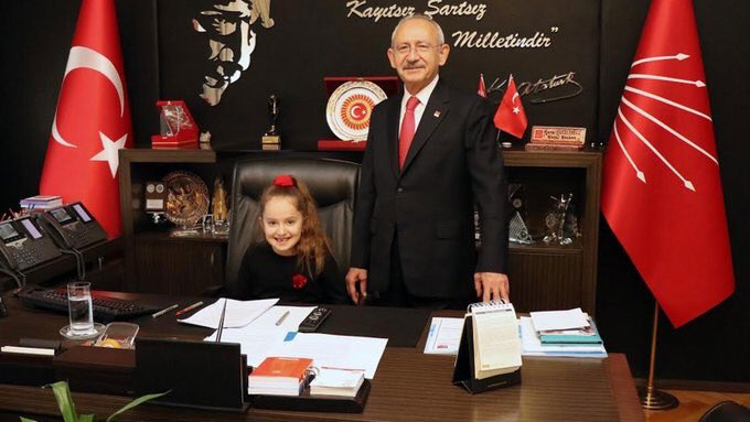 Kemal Kılıçdaroğlu, kabulünde 23 Nisan geleneği çerçevesinde koltuğunu belirli bir süre, 8 yaşındaki Ecrin Buğlem Uluçeşme'ye devretti.
