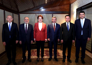 CHP lideri Kemal Kılıçdaroğlu'nun daveti üzerine, çalışma yemeğinde bir araya gelen İYİ Parti Genel Başkanı Meral Akşener, Saadet Partisi Genel Başkanı Temel Karamollaoğlu, Demokrat Parti Genel Başkanı Gültekin Uysal, DEVA Partisi Genel Başkanı Ali Babacan ve Gelecek Partisi Genel Başkanı Ahmet Davutoğlu, ilk kez birlikte poz verdi.