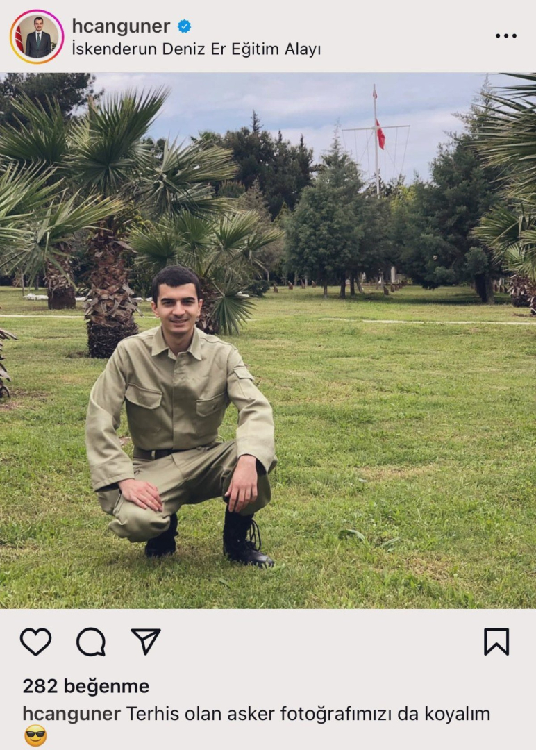 Bedelli askerlik fotoğraflarının sosyal medya hesabından paylaşan Güner, fotoğrafa “Terhis olan asker fotoğrafımızı da koyalım" notunu düşmüştü.