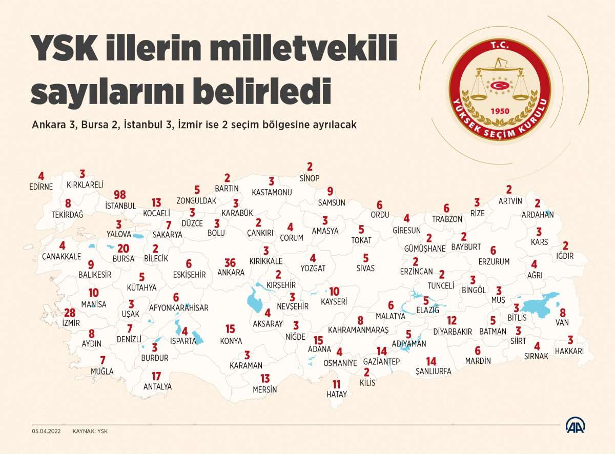 Milletvekillerinin illere göre dağılımı belirlendi. Yüksek Seçim Kurulu'nun kararı Resmi Gazete'de yayınlandı.