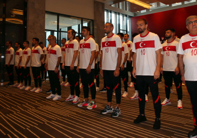 Saatler 09.05'i gösterdiğinde saygı duruşunda bulunan ay-yıldızlı ekibimiz, ardından hep bir ağızdan İstiklal Marşı'nı okudu.