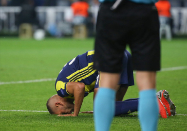 8' Fenerbahçe'de Jailson rakibiyle girdiği ikili mücadelenin ardından yerde kaldı. Oyun bir süreliğine durdu.