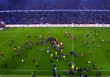 Süper Lig'in 30. haftasında Trabzonspor, sahasında Fenerbahçe'yi ağırladı. Sarı-Lacivertli ekip, sahadan 3-2'lik üstünlükle ayrıldı. Mücadelenin ardından taraftarlar sahaya indi. Güvenlik güçleri orta alanda futbolcuları ve hakemleri koruma altına aldı.