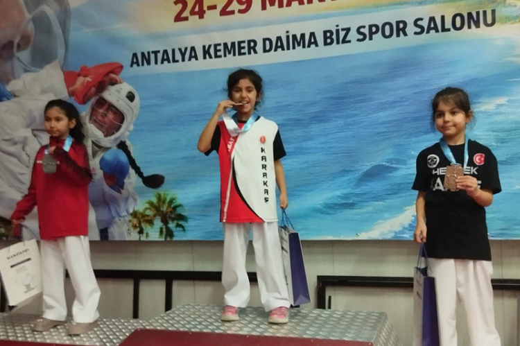 Kendi kategorisinde çıktığı tüm müsabakaları kazanarak namağlup Türkiye Şampiyonu olan minik sporcu, altın madalyanın sahibi oldu.