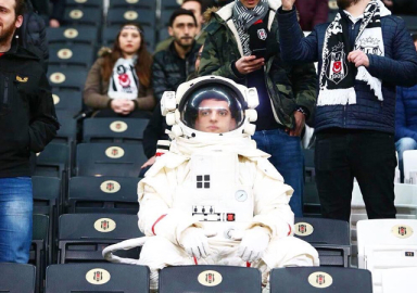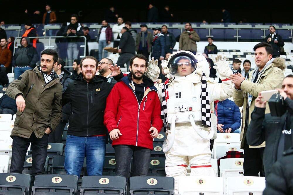 Geçtiğimiz günlerde metrobüste astronot kıyafeti ile dikkat çeken adam bu kez Vodafone Park stadı tribünlerindeydi.