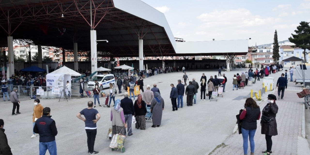 Ekiplerin sosyal mesafeye uymaları ile ilgili sürekli uyarmasına rağmen vatandaşlar kuralları hiçe saydı. Vatandaşlar, pazara girmek için neredeyse 1 kilometrelik kuyruk oluşturdu.