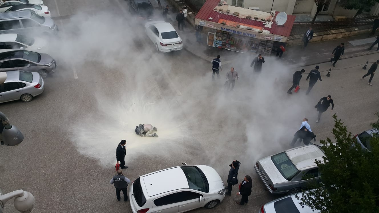 "Hatay Valiliği giriş kapısı önünde, kendine zarar verme amacıyla yanıcı madde dökerek, kendini yakmaya çalışan vatandaşımız, ikna çabalarına rağmen eylemini yapmıştır. Valilik personelinin müdahalesi ile kurtarılan vatandaşın hayati tehlikesi yoktur.