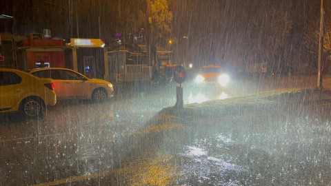 Edirne'de gece saatlerinde kent genelinde lodos ve sağanak etkili oldu.