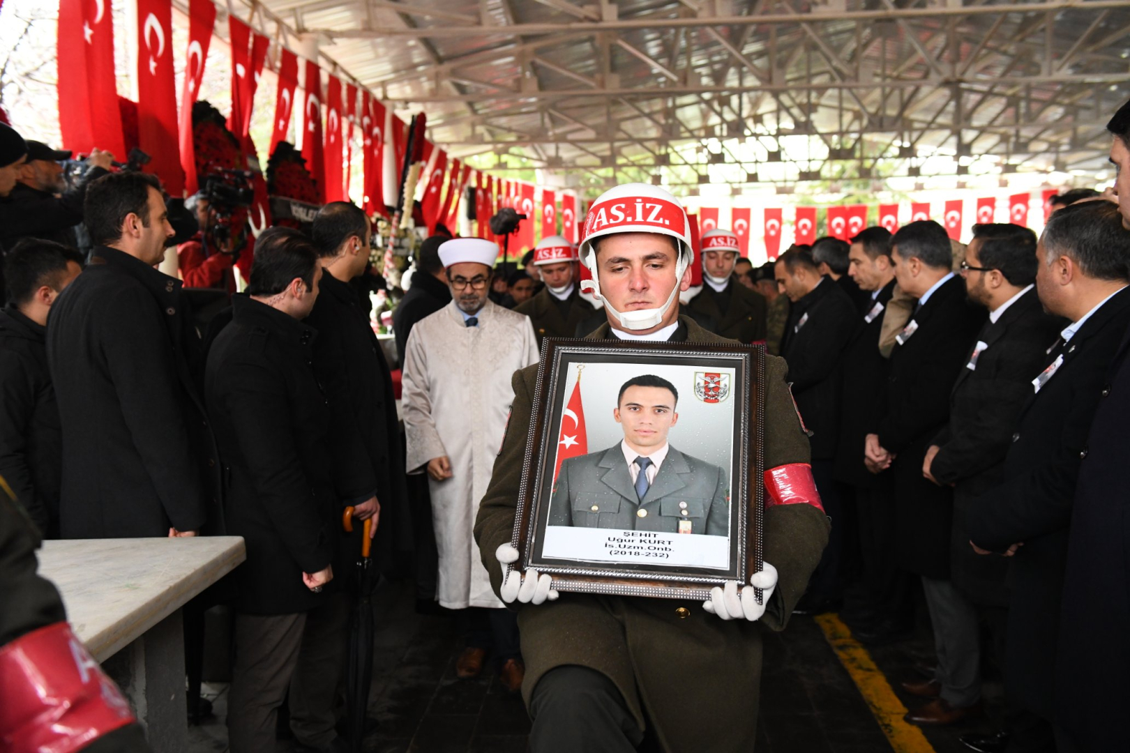 Şehidin eşi Hatice Kurt, cenaze aracındaki tabuta tülbentini bırakarak gözyaşı döktü. Kamuflaj giydirilen şehidin kızı Döne, zaman zaman babasının tabutuna asker selamı verdi. Cenaze namazının ardından Piyade Uzman Onbaşı Uğur Kurt'un cenazesi, şehitliğe defnedildi.