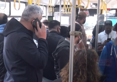 Yolculuk anlarında otobüste sosyal mesafenin hiçe sayıldığı görüldü.