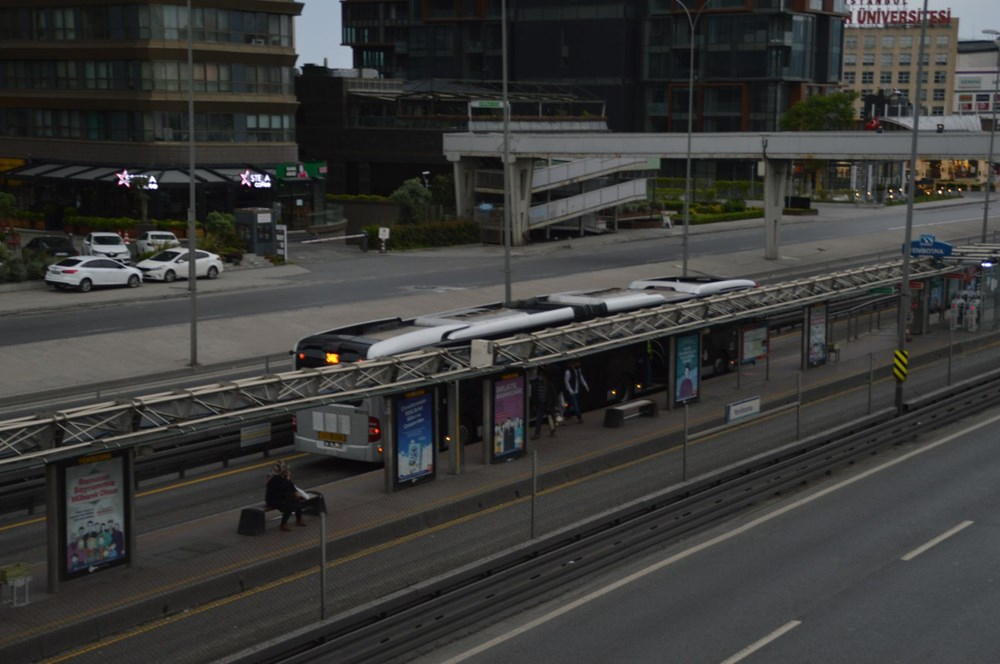 Kısıtlamadan kapsamdışı olan vatandaşlar da toplu taşımayı kullanmak için durakda bekledi.