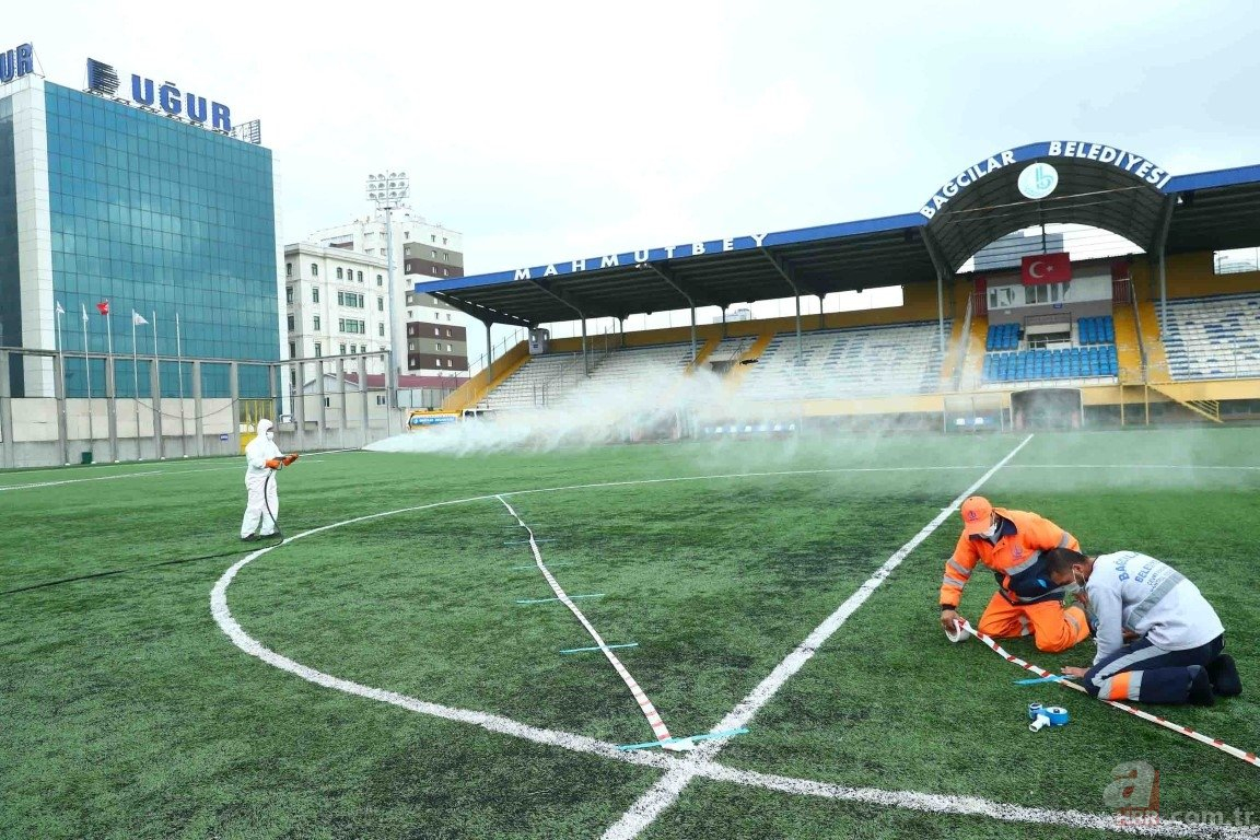 Bağcılar'da bulunan Bağcılar Belediyesi Mahmutbey Stadyumu da günler öncesinde cuma namazı için hazır duruma getirildi. Stadyumun içinde dün ekiplerce sosyal mesafe kuralları belirlendi.