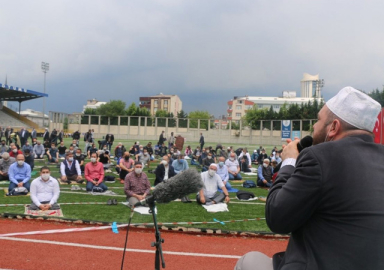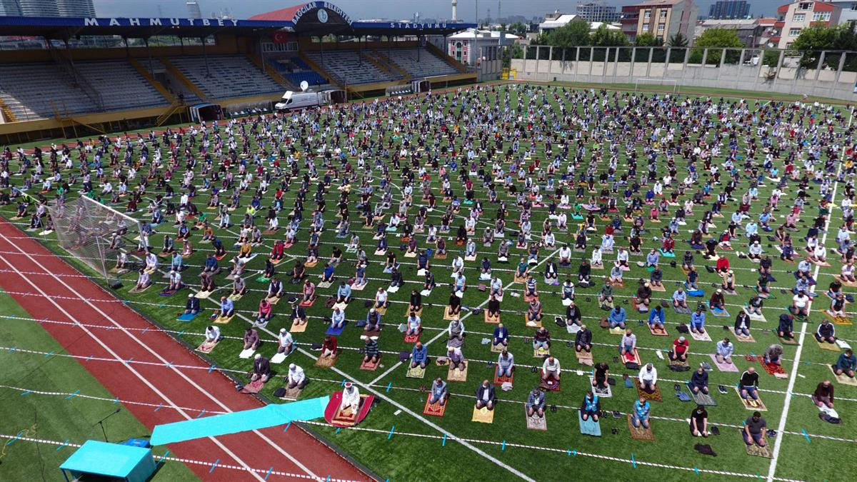 Bugün cuma namazını kılmak için gelen binlerce vatandaş stadyumu doldurdu. Vatandaşların maske taktığı ve kişisel seccadelerini getirdikleri görüldü.