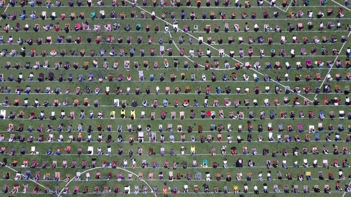 Camilerin dışında meydan ve stadyumlar başta açık alanlarda 1 buçuk metre kuralına uyularak çizilen çizgiler ile vatandaşlar, cemaat ile cuma namazını kıldı.